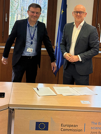 | Laurent Jerrige (left), JRC Director for Nuclear Decommissioning, and Pavol Stuller, Amentum’s European Development Director (right), signing the contract |