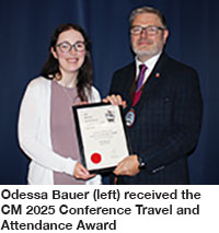 The CM Annual Conference Travel and Attendance Award is this year awarded to Odessa Bauer, University of Alberta, Canada.