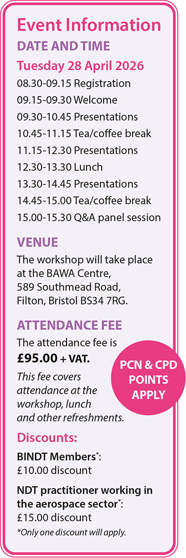 For further information, contact: Events and Awards Department, The British Institute of Non-Destructive Testing,