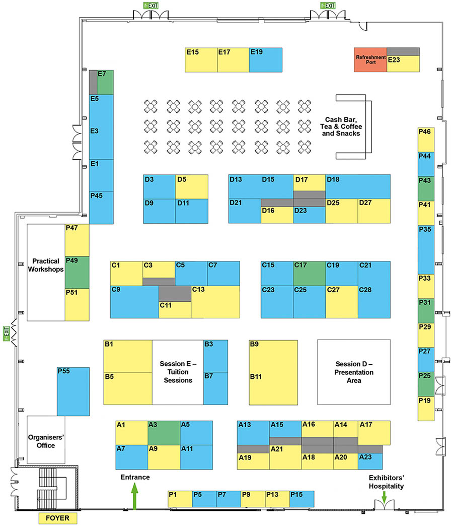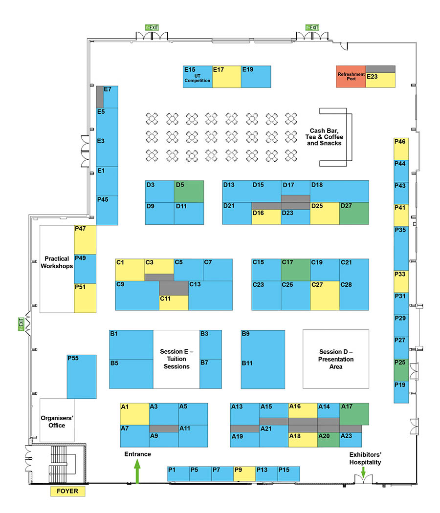 | Stand sold | Stand provisionally booked | Stand available |