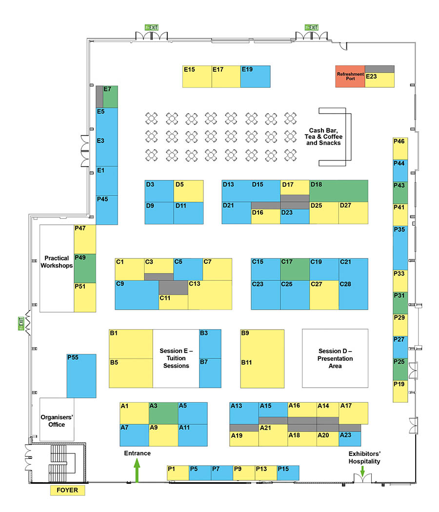 | Stand sold | Stand provisionally booked | Stand available |