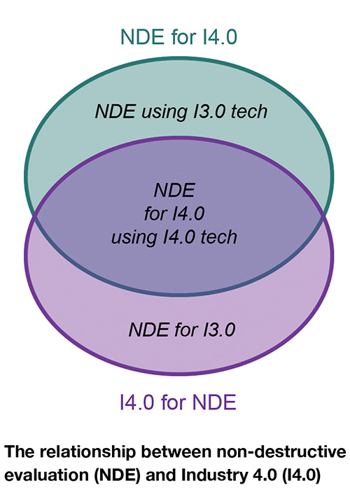 The scope of ‘NDE 4.0’ includes the enhancement of non-destructive evaluation (NDE) to serve Industry 4.0, for example exposing full details of NDE inspection to production planning as well as the enhancement of NDE by adopting Industry 4.0 technologies, such as adaptive inspection planning using a digital twin of the inspection.