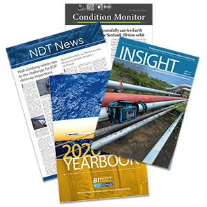 Insight, the Institute's monthly journal, is circulated worldwide to more than 65 countries. It covers a broad scope and appeals to a wide audience in the NDT, condition monitoring and associated sectors. Essential reading for all those involved with NDT, condition monitoring and associated technologies, Insight is the only truly international, dedicated and professional NDT journal.